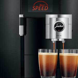 Model GIGA X8c jest wyposażony w podwójną wylewkę z regulacją wysokości o przemyślanej konstrukcji, która dzięki technologii gładkiej pianki umożliwia przyrządzanie modnych specjałów z dodatkiem mleka i pianki mlecznej. Natomiast funkcja Speed umożliwia przyrządzanie specjałów kawowych w rekordowo krótkim czasie.